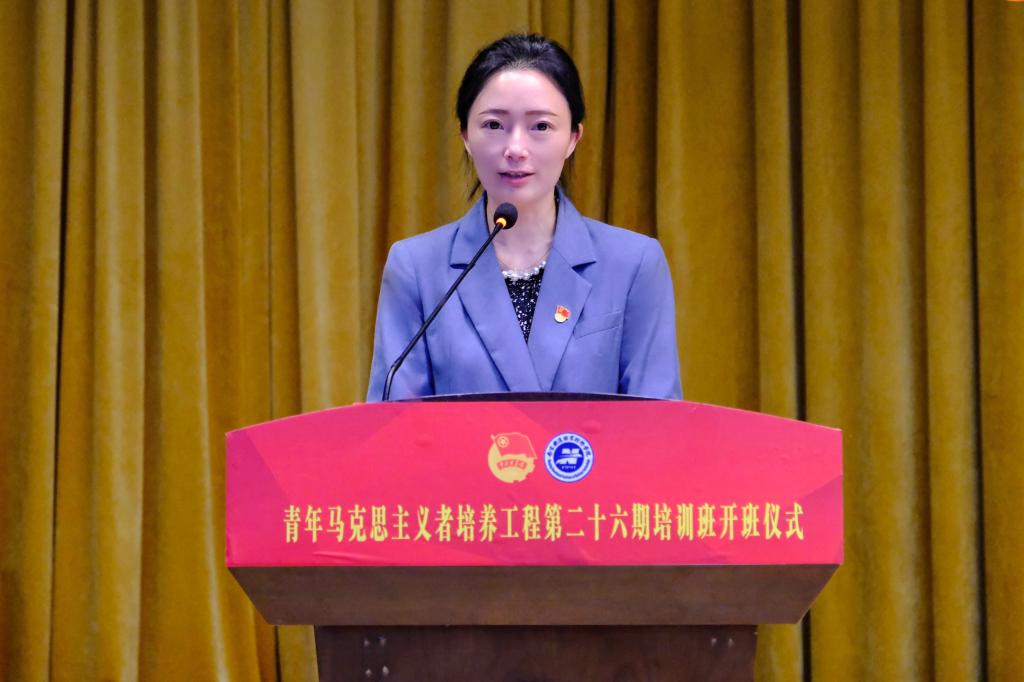 财经与物流管理学院的陶佳璐作为“青马工程”第二十六期培训班学员代表发言。她表示作为新时代青年,要坚定理想信念、补足精神之钙、筑牢信仰之魂,成为一名真正的马克思主义者,实现自我小梦想,助力伟大中国梦!